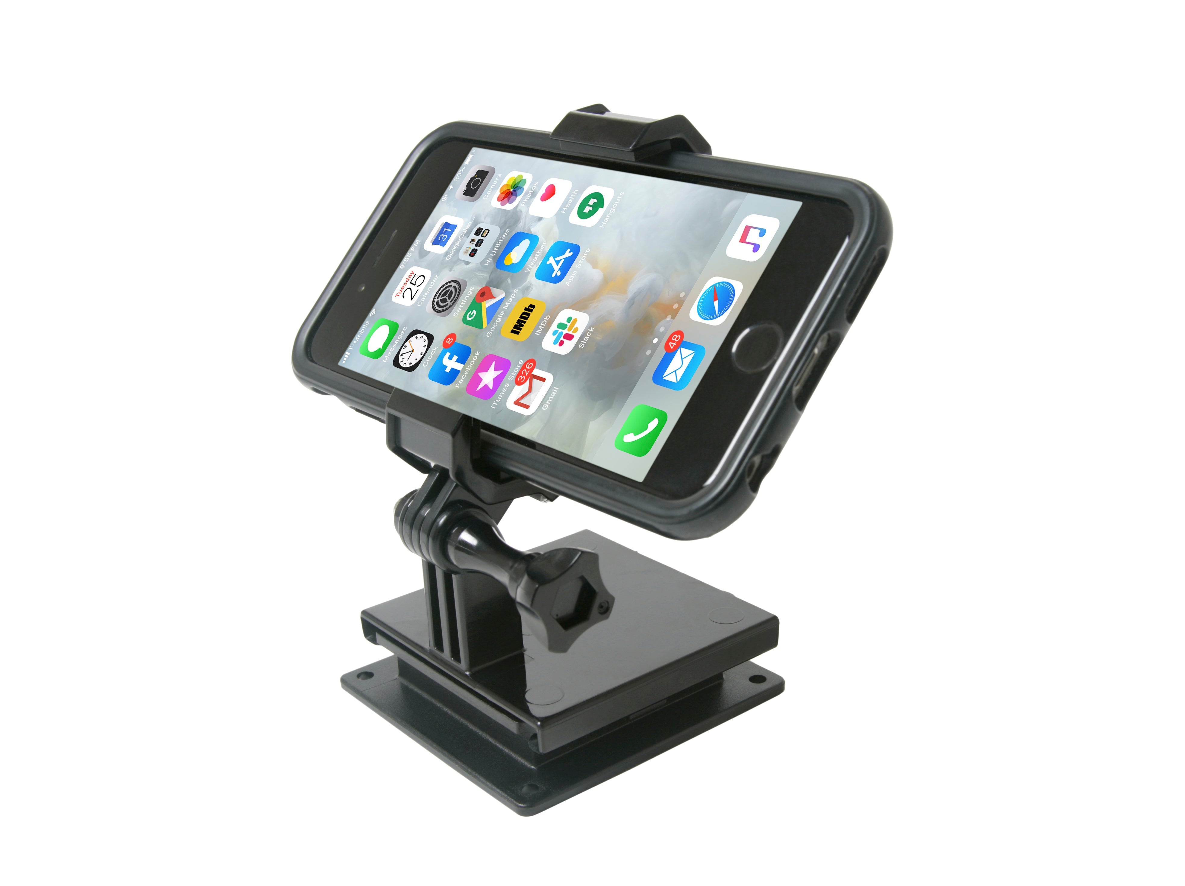 A new universal mount for phones that can securely hold phones from 2.5 to 3-7/8 inches wide. The phone can be tilted vertically to improve viewing angles and reduce glare. Works great with the Base Mount Fixed surface mount or bundle it with any of the AirGizmos surface mounts for an array of options.