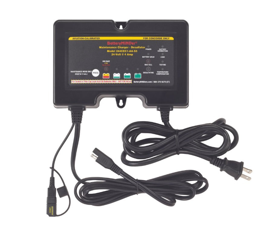 These chargers-maintainers-desulfators are designed for all size and type 24-Volt Concorde® Aviation Batteries. If you want the longest possible life and performance from your batteries there is no other product better at doing just this and BatteryMINDer® Guarantees it! In addition to charging and maintaining all 24V Concorde® sealed or wet cell (filler caps) aviation batteries users can now determine the level of charge remaining in their battery, and if weak and in need of replacement, before going bad.