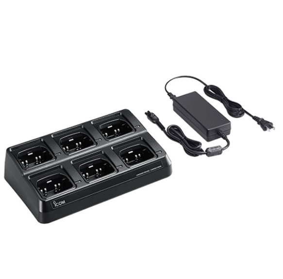 ICOM Six bank charger with EURO plug AC adapter and cups installed