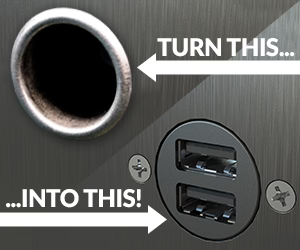 Now available in two faceplate styles... a custom square faceplate or a round faceplate style that fits all standard openings for 12v cigarette lighter socket panel cuts.