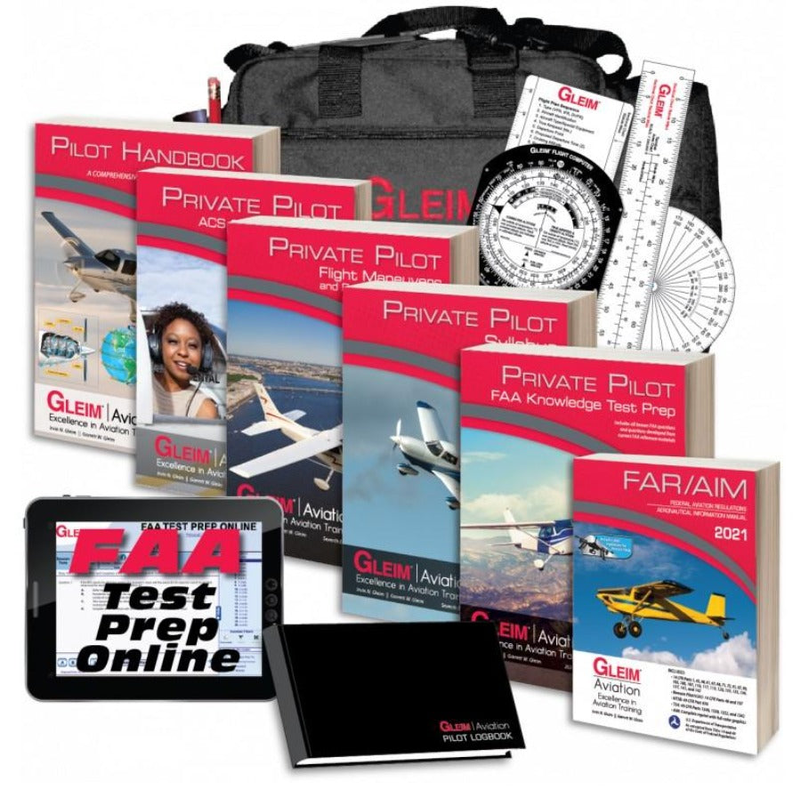 The Gleim Private Pilot Kit is an all-in-one program designed to expedite training for the Private Pilot certificate. This kit contains what you need (except airplane and instructor!) to become a Private Pilot.