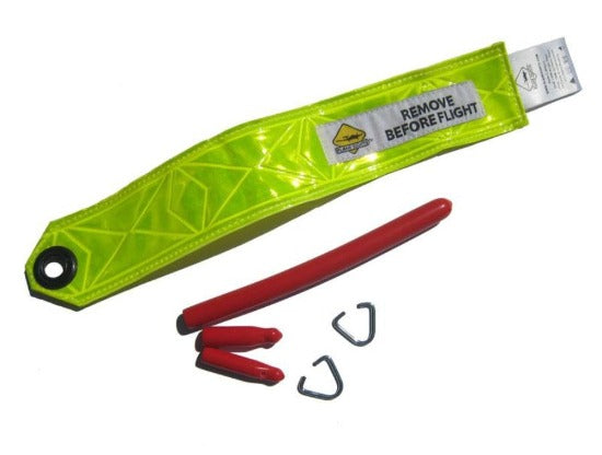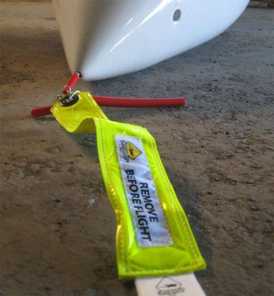 The kit includes several vented plugs so it even works with double-tube systems and is guaranteed not to pressurize your pitot static system. The blazing yellow color of the included foot-long, ANSI-compliant and weather-resistant reflective remove-before-flight streamer stands out equally well in daylight or darkness under all weather conditions, so it can’t be missed. The kit comes complete with three different-sized pitot tube plugs, our unique streamer, and two rust-resistant coated triangle rings.