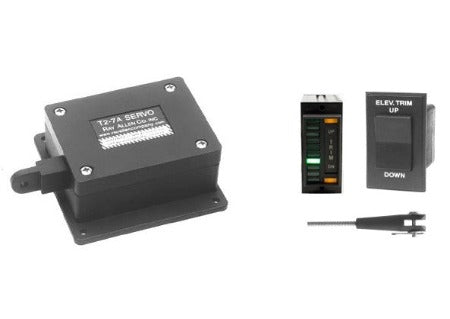 No electronics are used to control Ray Allen servos and they will not travel unless power is switched on by the pilot. Ray Allen has three different T2 and T3 servos available: The T2-7A servo has .7 inch travel. The T2-10A servo has 1.0 inch travel. The T3-12A servo has 1.2 inch travel. Check the specifications for a servo output travel that best suits your application. A Ray Allen servo is included in a Ray Allen Trim System, (along with indicator, rocker switch and clevis/pushrod kit), or can be purchased individually.