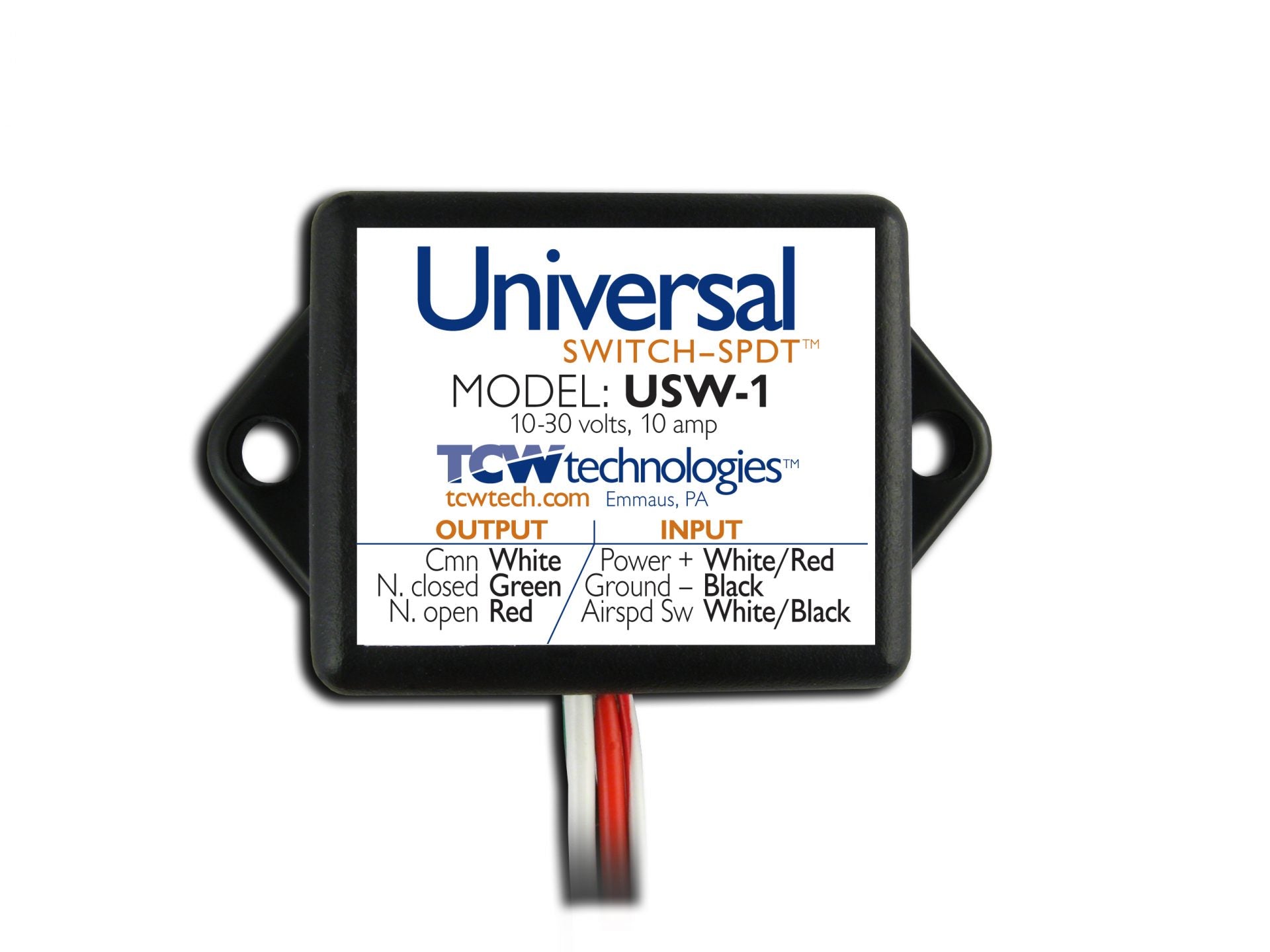 The Universal Switch – Airspeed Kit (USW-1) allows the control of electrical loads based on airspeed, at either below or above an airspeed set point. The kit includes an ASW-1 airspeed switch and a Universal Switch-SPDT controller. This combination of components allows for the switching of electrical loads up to 10 amps and up to 30 volts based on aircraft speed.
