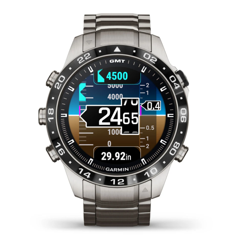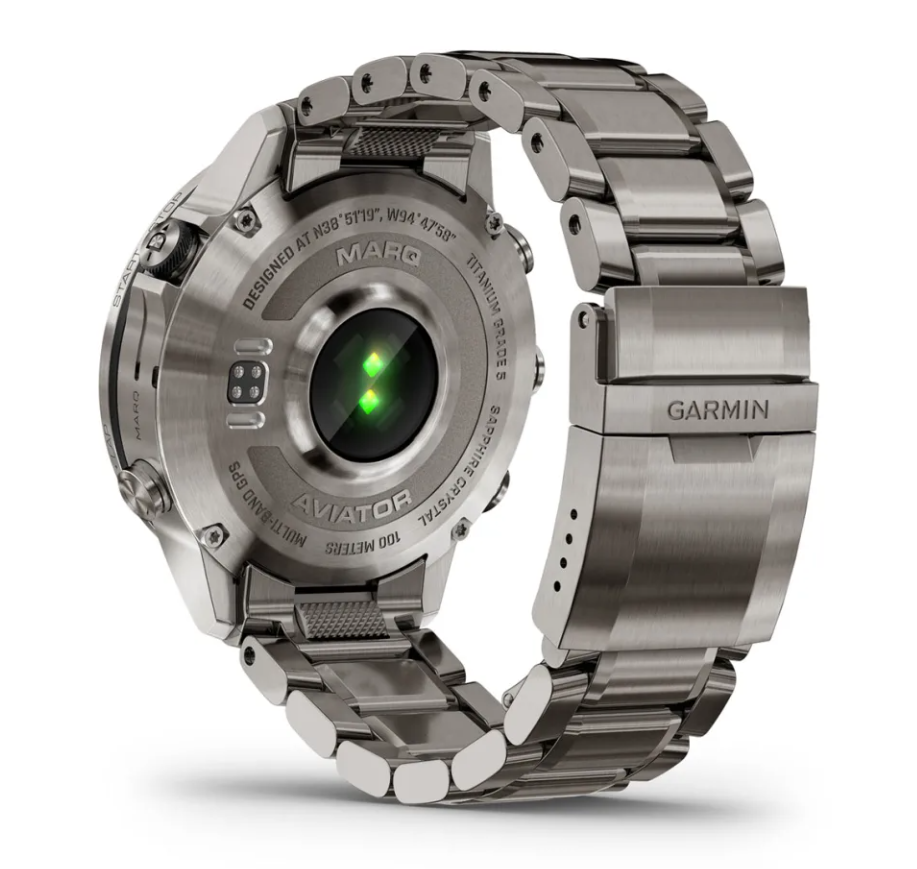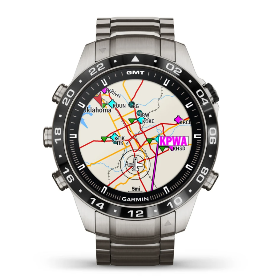 THE SKY ’S THE LIMIT. EXCEED YOURS. MARQ AVIATOR (GEN 2) IS A MODERN TOOL WATCH LIKE NO OTHER . IT ’S BUILT FROM GRADE- 5 TITANIUM TO BE HARDER AND STRONGER , WITH A STUNNING NEW AMOLED TOUCHSCREEN DISPLAY THAT GIVES YOU UP TO 16 DAYS OF BATTERY LIFE IN SMARTWATCH MODE AND UP TO 42 HOURS IN GPS MODE. WHETHER YOU ARE A PILOT OR AN AVIATION ENTHUSIAST, MARQ AVIATOR BUILDS ON YOUR PASSION FOR ALL THINGS FLIGHT. FLYING FEATURES SUCH AS THE WORLDWIDE AERONAUTICAL DATABASE AND DIRECT-TO EMERGENCY NAVIGATION GUIDE YOU WHILE DETAILED NEXRAD WEATHER RADAR AND GARMIN AVIONICS INTEGRATION ENSURE YOU’RE ALWAYS IN THE PILOT’S SEAT.